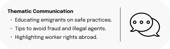 Humanising Government Communication for Migrants The Protector of Emigrants (PoE), operating under the Ministry of External Affairs, Government of India, safeguards the interests of Indian citizens seeking overseas employment. With a mandate to ensure safe, legal, and transparent migration, PoE regulates recruitment practices, educates potential emigrants, and addresses grievances of Indian workers. Through its initiatives, PoE plays a vital role in empowering migrants with knowledge, protecting them from exploitation, and promoting their welfare, thereby strengthening India’s global workforce community.